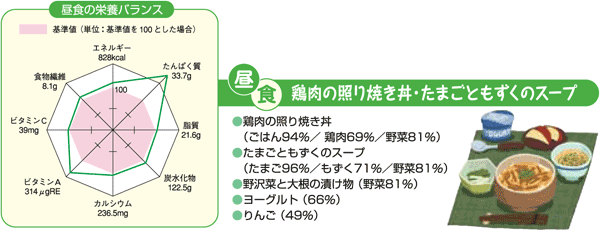 ●ごはん、たまご、野菜など多様な食物によって栄養バランスがとりやすい。