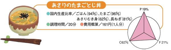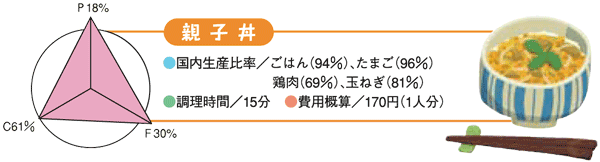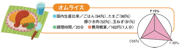 ●国内生産比率(%)の高い食品でつくる1日の献立例