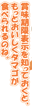 • 賞味期限は、タマゴを安心して「生食」できる期限を表示したものです。