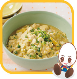 | ① | 豆腐、たまご、ねぎ、しょうゆ、だし汁を混ぜ合わせ、耐熱皿に入れ、ラップをして1分30秒加熱する。 |