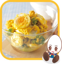 β-カロテン豊富なかぼちゃやブロッコリー、良質のたんぱく質にビタミンAも含むたまご。さらに野菜のビタミンC・Eとの相乗効果で免疫力を強化します。