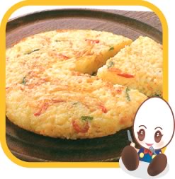 | ① | ごはんにタマゴとせん切りにしたAとBを加えてよくまぜ、フライパンにバターをひき、両面をこんがりと焼き、しょうゆをかけます。 |
