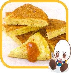 | ③ | 表面が固まり、火が通ったら火を止めて、そのまま5分ほど蒸らしてから、皿に空けて切り分け、ケチャップを添える。 |